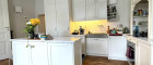 Die großzügige Landhausküche mit edler Marmor-Arbeitsplatte und großzügigem Essbereich bietet viel Platz und Stil zum Kochen und Genießen.