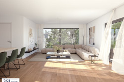 - Großflächige Aluminiumfenster mit 3-Scheiben-Isolierverglasung und Sonnenschutz