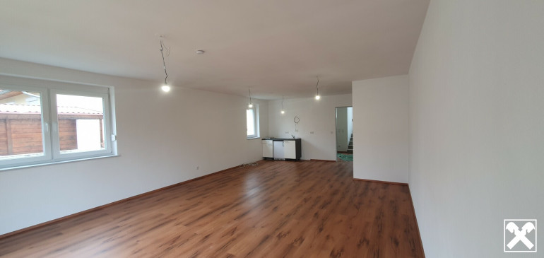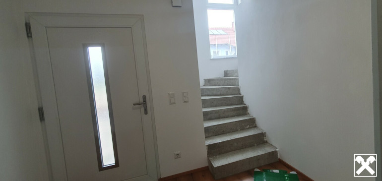 110 m² Wohnfläche, ca. 200 m² Garten, geräumiger Eingangsbereich mit Stiegenaufgang ins OG, großzügiger Wohnraum mit Zugang zum Garten, offene moderne Küche komplett ausgestattet inkl. Speis, strapazierfähige Fliesen- und Vinylböden, 3 Schlafzimmer, Bad exklusiv ausgestattet mit Wanne und Dusche, 2 WCs