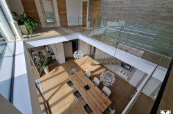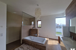 Stilvolle Stiegenanlagen führen in das Obergeschoss, hier werden Sie von einem atemberaubenden Galeriebereich mit viel Glas und toller Belichtung empfangen. Von hier aus sind alle Räumlichkeiten getrennt begehbar, ein Elternschlafzimmer, ein geschmackvolles Badezimmer mit Badewanne, großer Walk-In-Dusche und WC samt Doppelwaschtisch sowie zwei weitere, große Zimmer, welche bei Bedarf mit wenig Aufwand gut teilbar wären, vervollständigen das reichhaltige Platzangebot. Ein Zimmer wird derzeit als Schrankraum genutzt.