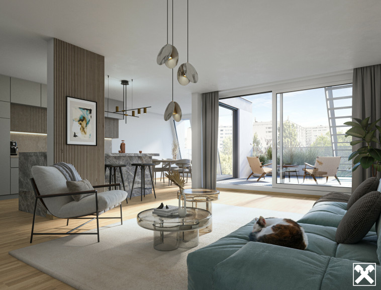 Entdecken Sie 5 exklusive, zweistöckige Townhäuser und 23 stillvolle hochwertige Wohnungen.