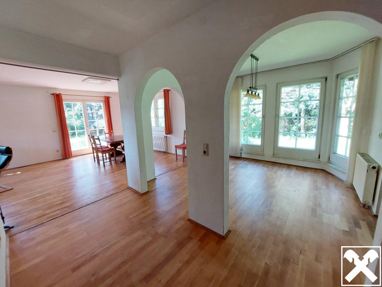 Kellergeschoss: Garage, 3 Räume-tlw. mit Heizkörper, Technik/Heizraum (Wärmepumpe + Holzvergaserofen)
