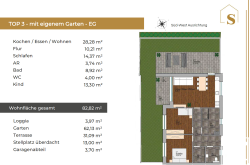 Die Wohnung verfügt über eine eigene Terrasse und einen kleinen Garten mit ca. 62 m²