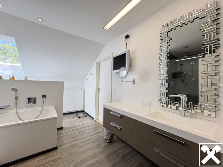 Der private Wohnbereich teilt sich in eine große Hauptwohnung mit hochwertiger Ausstattung und großzügigem Grundriss sowie eine separate, gemütliche Einliegerwohnung – ideal für Gäste, Personal oder zur Vermietung.