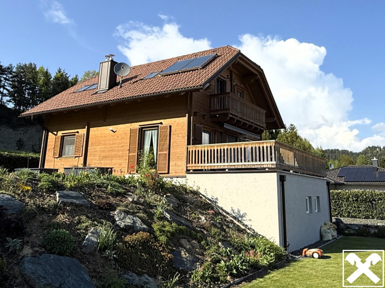Dieses schöne Wohnhaus von der Firma „Rubner Haus“ 2018 erbaut, liegt auf einem Sonnenplateau bei St. Veit an der Glan mit Blick auf die Burgen Hochosterwitz und Taggenbrunn. Traditionelle, hochwertige Bauweise ist hier gepaart mit schönem Grundstück und liebevoll gestaltetem Garten. Eine integrierte Doppelgarage und ein kleines Gartenhaus runden dieses tolle Angebot ab.