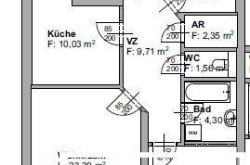 Die Wohnung liegt im 1. OG ohne Lift und bietet 2 Schlafzimmer, 1 Küche, 1 Bad, 1 WC, 1 Abstellraum und ein großes helles Wohnzimmer mit Zugang zur Loggia (verglast).