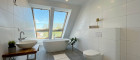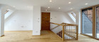 Über eine stilvolle Vollholz Eichentreppe gelangen Sie ins Obergeschoss. Dort öffnet sich der Raum – mit einer lichtdurchfluteten Galerie, einem Fitnessbereich und einem weiteren Badezimmer mit freistehender Badewanne. Auch auf dieser Ebene genießen Sie den Zugang zu weiteren Terrassen bzw. Loggien, was die Maisonette noch großzügiger und vielseitiger macht.
