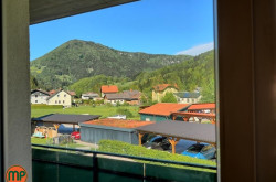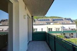 Die Wohnung befindet sich im 1. Stock. Von der Wohnküche und vom Schlafzimmer gelangt man auf den großen Süd-Balkon, der einen schönen Ausblick auf die sanften Hügel des Alpenvorlands bietet.