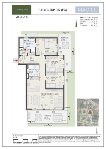 Am Fuße des Kreuzbergl, in St Martin, entsteht eine moderne und ansprechende Wohnanlage, die aus 4 Gebäuden mit jeweils 5 Wohneinheiten besteht.