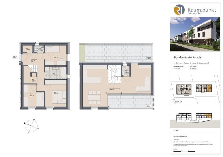 Die Wohnanlage befindet sich in einer ruhigen, familienfreundlichen Wohngegend in der Staudenstraße in Altach, einer Gemeinde mit hoher Lebensqualität im Herzen des Vorarlberger Rheintals. Die Umgebung ist geprägt von gepflegter Wohnbebauung, viel Grün und guter Infrastruktur. Fußläufig erreichbar sind Schulen, Kinderbetreuungseinrichtungen, Nahversorger sowie Freizeitmöglichkeiten. Die Nähe zu Hohenems, Götzis und Dornbirn sowie die schnelle Anbindung an die A14 machen den Standort auch für Pendler besonders attraktiv.Beschreibung der Immobilie