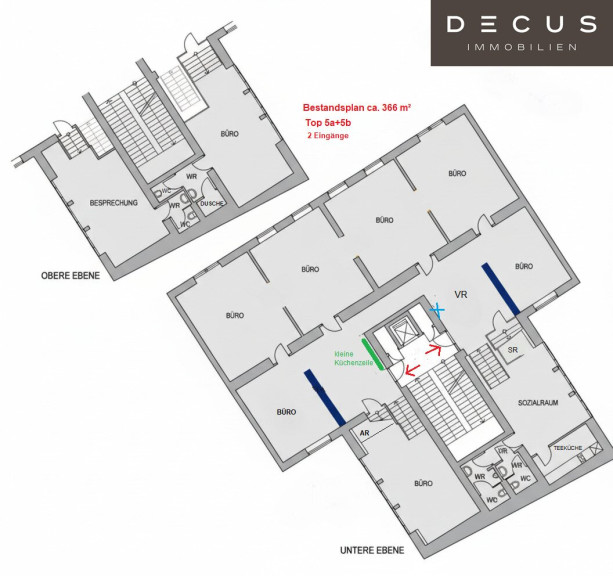 - 1 Sanitäreinheit und Dusche über Stiegen die nach oben führen - über einen Büro-/Besprechungsraum erreichbar