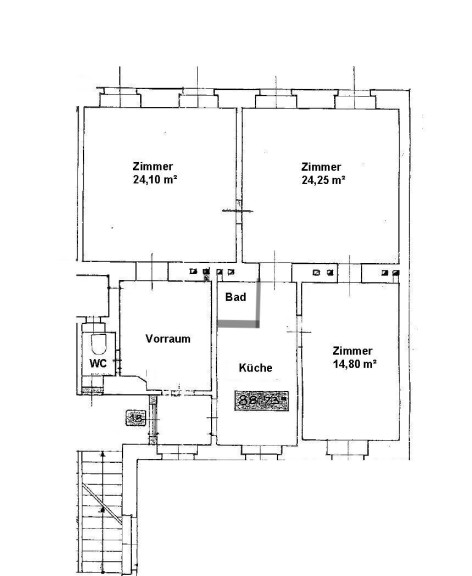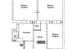 Der Eingangsbereich führt in ein geräumiges Vorzimmer, von dem aus Sie die Küche erreichen. Die 3 Zimmer haben Flächen von etwa 24 m², 24 m² und 14 m², wodurch genügend Platz für Wohn- und Schlafbereiche zur Verfügung steht. Die Räume sind gut belichtet und durchflutet von Tageslicht, was eine angenehme Atmosphäre schafft. Die Küche ist vollausgestattet. Das Badezimmer verfügt über eine Dusche, ein Handwaschbecken und eine zeitlose Verfliesung.