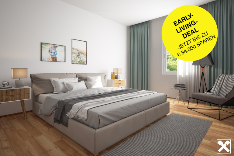bis zum 28.02.2026 bzw. bis zur Annahme des 25. Kaufanbots. Die Aktion „Early-Living-Deal“ gilt für alle aktuell verfügbaren Wohnungen des Projekts „Rosengarten“. Sobald 25 Kaufanbote eingelangt und angenommen wurden, endet die Aktion automatisch. Ein Rechtsanspruch auf die Aktionskonditionen besteht nicht; der Bauträger behält sich die jederzeitige Änderung oder Beendigung der Aktion vor.