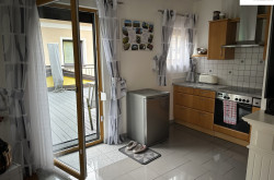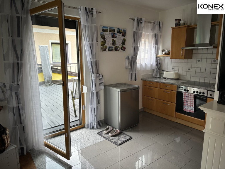 Wohn-/Essbereich mit moderner Küche und Terrassenzugang