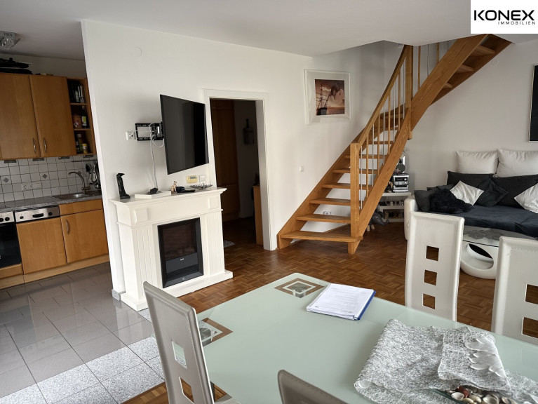 Der Wohnbereich erstreckt sich offen über zwei Etagen. Bei Bedarf lässt sich die Einheit mit geringem Aufwand wieder in zwei getrennte Wohnungen aufteilen.