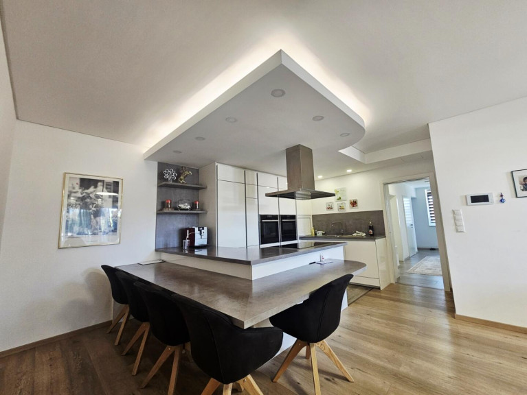 großzügige, offener Wohn-/Essbereich mit hochwertiger Dan-Küche und direktem Zugang zur Terrasse
