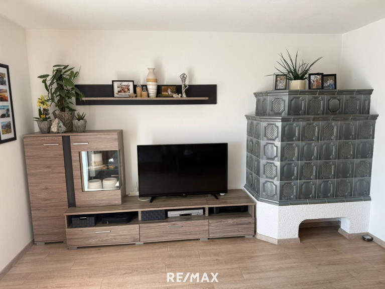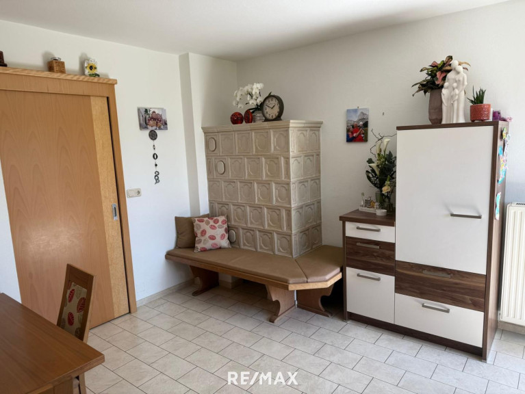 Das Obergeschoss wurde in den letzten 25 Jahren durchgängig saniert und erneuert. Unter anderem wurden Bad, Küche-Esszimmer Wohnzimmer und Vorraum erneuert und ein neuer Kachelofen, der Wohnzimmer und Küche beheizt, eingebaut.