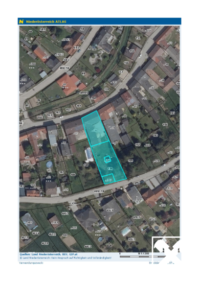 Hinweis: Für den rückwärtigen Zubau (Garagen) liegt eine Baubewilligung vor, die Fertigstellungsmeldung steht noch aus.