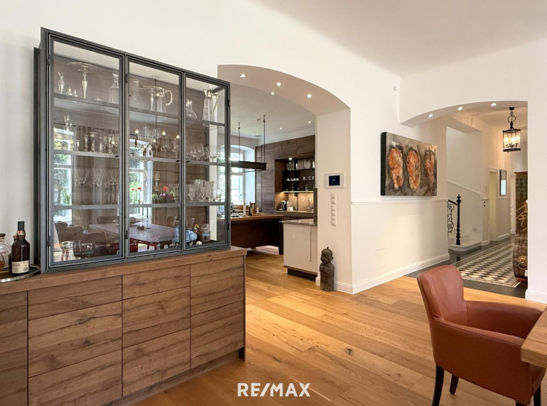 Man spürt bei jedem Schritt, sei es bei den originalen Flügeltüren, den schweren Klinken, ehrwürdigen Türstöcken oder bei den geätzten Glasscheiben. Und doch: