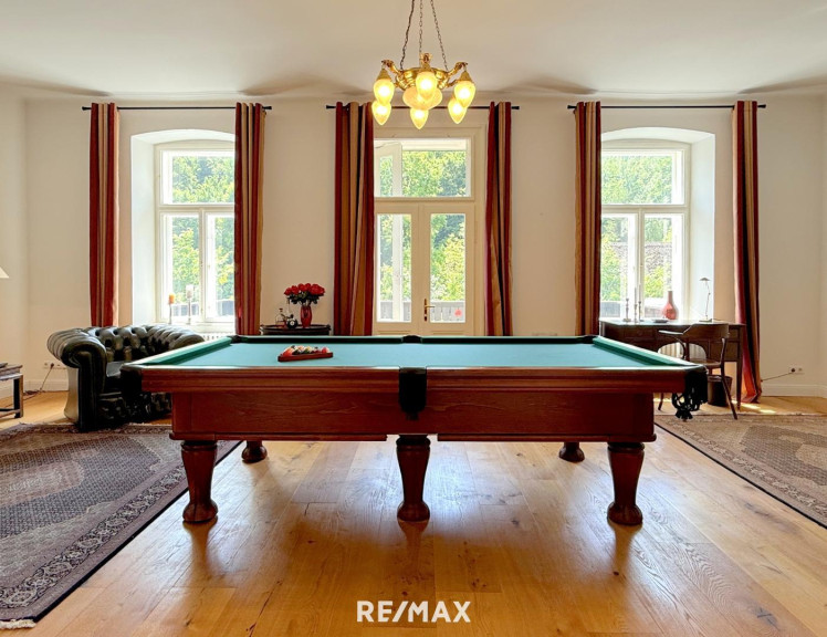 Das leise Klicken der Billardkugeln begleitet die Gespräche, der kleine Balkon öffnet sich zur Natur.