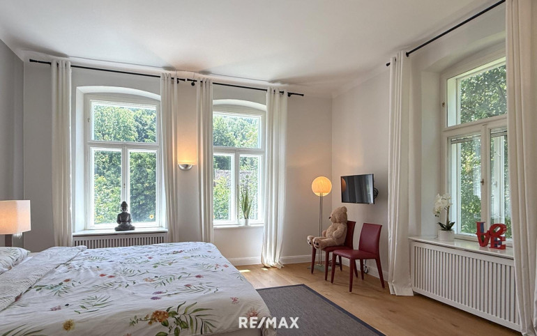 Drei großzügige Zimmer entfalten hier ihren Charakter – das eine ein behagliches Schlafzimmer, das andere ein stilvolles Büro mit Haltung.