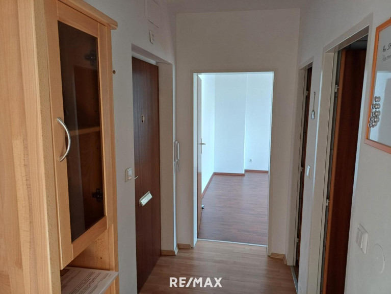 Die Wohnung verfügt über einen praktischen Vorraum, von dem aus alle Räume zentral begehbar sind. Die Küche ist funktional gestaltet und bietet ausreichend Platz für die Zubereitung alltäglicher Mahlzeiten. Das helle Wohnzimmer lädt zum Verweilen ein und bietet genug Raum für eine gemütliche Wohnlandschaft sowie einen Essbereich.