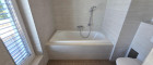 • Badezimmer mit Badewanne, Dusche, Doppelwaschbecken und WC