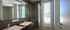 • modernes Badezimmer mit Doppelwaschbecken, Badewanne, Dusche und WC