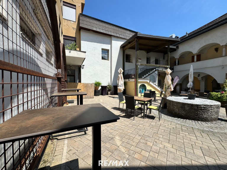 Der Innenhof, ein echter Geheimtipp, lädt mit seinem charmanten Gastgarten zum Verweilen ein. Hier sitzen Gäste unter freiem Himmel, genießen laue Sommerabende und kühle Getränke – ein Ort, der zum Treffpunkt werden kann. Der Gastgarten wird mit einem weiteren Lokal geteilt, was zusätzliche Synergien ermöglicht.