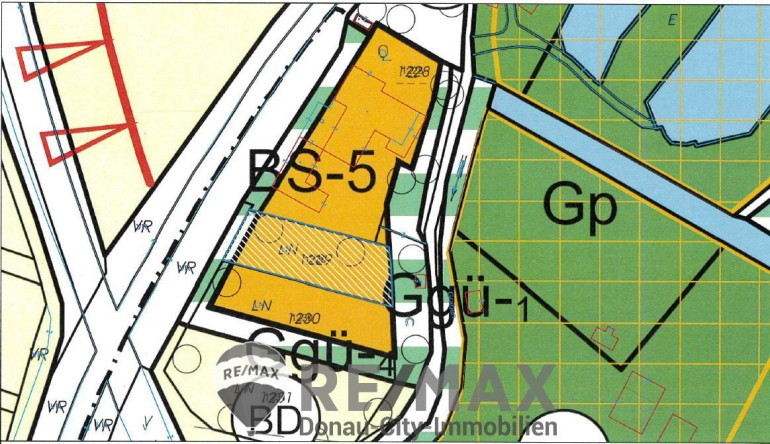 Die Gesamtfläche von ca. 5.000m² teilen sich ca. zur Hälfte in Bauland Sondergebiet und Grünland auf.