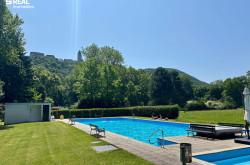 Fliesen, Laminatboden, Öl, Kamin, Zentralheizung, Einbauküche, Bad mit Fenster, Dusche, Parkplatz, Sporteinrichtungen, Swimmingpool, Sauna