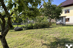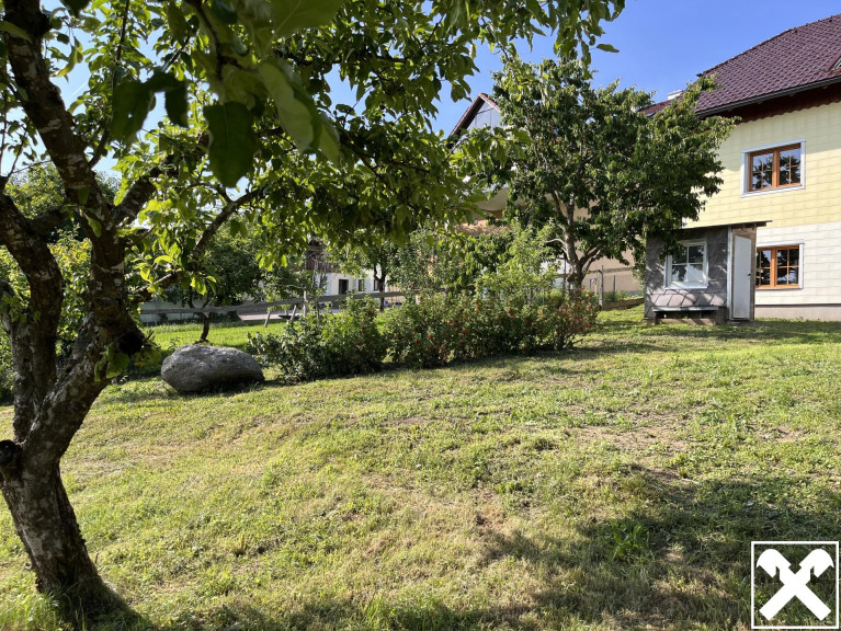 Der große Garten bietet viel Platz zum Entfalten: Ob eigener Gemüseanbau, Hühnerhaltung oder eine Spielwiese für Kinder – hier ist alles möglich. Bestehende Bäume sorgen für natürliche Schattenplätze und schaffen eine ruhige, grüne Oase.