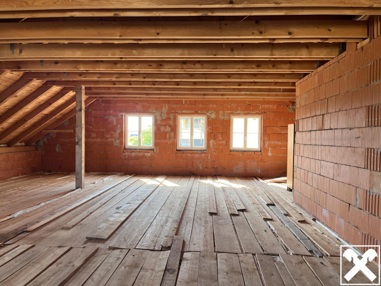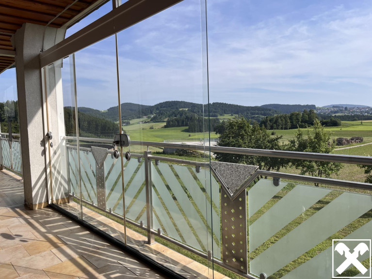 Das Dachgeschoss kann zu einer weiteren Wohneinheit fertig gestellt werden und wartet auf Ihre Ideen. Auch von diesem überdachten großzügigen Balkon hat man eine wunderbare Fernsicht. Das Untergeschoss bietet viel Potential, ob als weitere Wohneinheit mit separatem Eingang und Garage – als zusätzlichen Wohnraum oder für Hobbys, Werkstatt oder Lagerfläche. Bei Bedarf lässt sich das Haus auf bis zu drei separate Einheiten aufteilen.