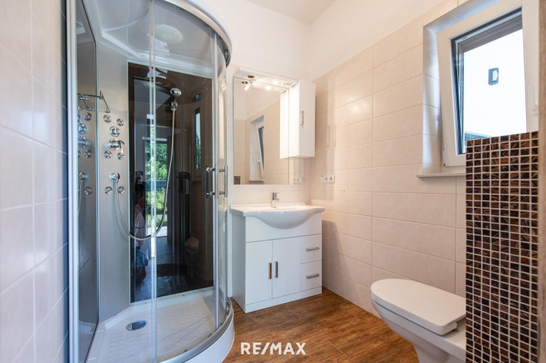 Zwei moderne Badezimmer, drei WCs und eine exklusive Vollholztreppe in Tischlerqualität unterstreichen den stilvollen Charakter des Hauses.