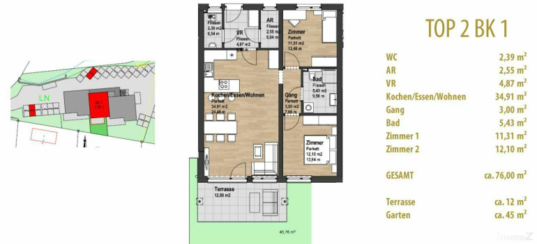 | Heizwärmebedarf: | B 45,00 kWh/m²a |