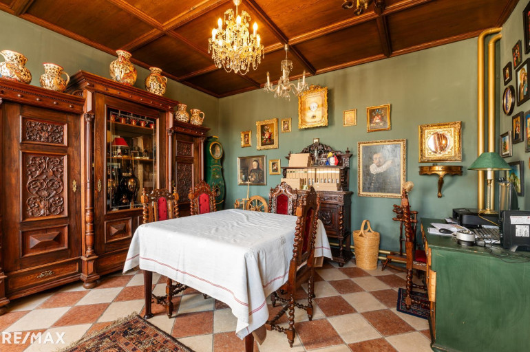 Mit einer Bruttogeschoßfläche von über 570 m² verteilt auf drei großzügige Etagen mit Gewölbekeller, bietet dieses historische Anwesen Raum für ein luxuriöses Wohnerlebnis:
