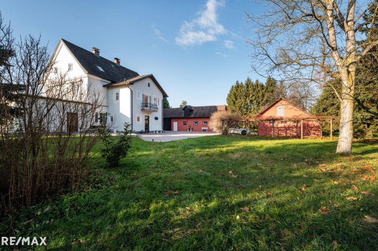 Das Anwesen verfügt über ein 96 m² großes Nebengebäude, eine 110 m² umfassende Garagenanlage und eine 56 m² große Terrasse. Der weitläufige Park begeistert mit seinem alten Baumbestand – darunter Ginkgos, Platanen, Nadel-, Laub-, Nussbäume und zu jeder Jahreszeit blühende verschiedene Sträucher – und einer naturbelassenen Blumen (Margarithen, Kamille, Spitzwegerich, …), Kräuterwiese und Gartenanlage, die für gesunde Verpflegung aus der Natur sorgen.