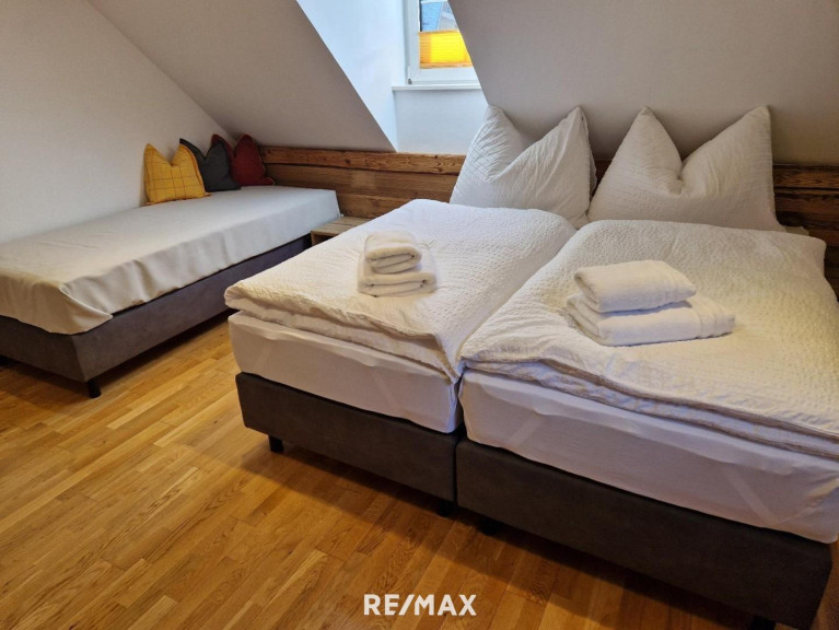 Die Lage des Hauses ist besonders attraktiv: In unmittelbarer Nähe befinden sich zahlreiche Skigebiete sowie Einkaufsmöglichkeiten, die bequem zu Fuß erreichbar sind. Eine Garage für eien PKW kann in direkter Umgebung angemietet werden, derzeit für ca. € 70,- pro Monat.