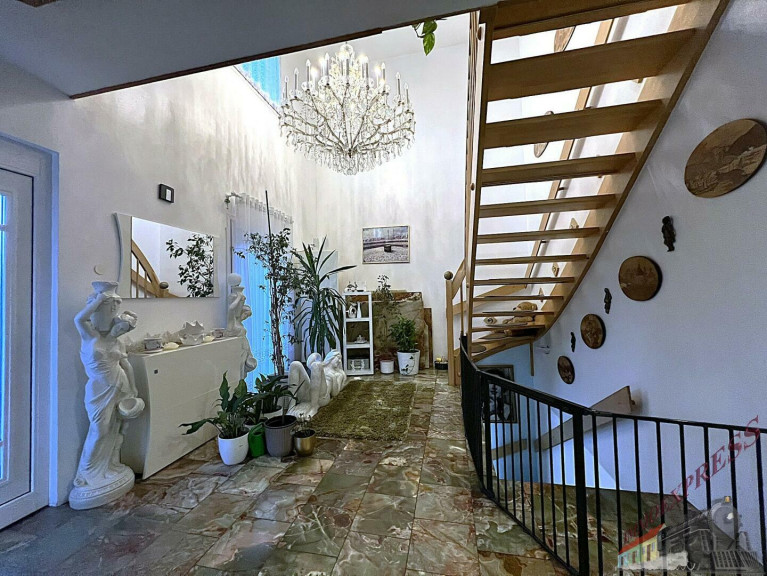 · Ausstattung: Hochwertige Onyx- und Marmorböden, Terrasse mit Natursteinbelag, SAT-Anlage, Insektenschutzgitter, Außenrollos, Wasserentkalkungsanlage, Kaminanschluss für Schwedenofen, Leitungen für PV-Anlage vom Keller bis zum Dach vorbereitet
