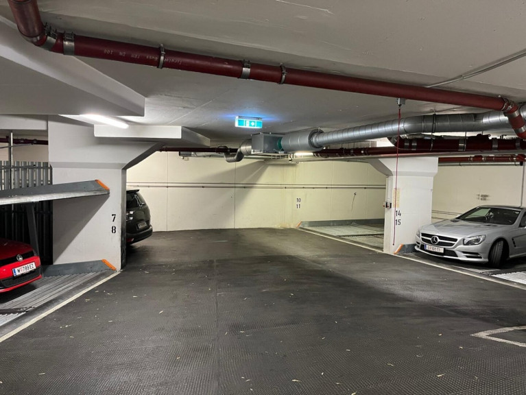 Der Garagenplatz (Stapelgarage unten) befindet sich in der Lazarettgasse,