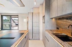 - neue Einbauküche mit Miele-Geräten, Naturstein-Arbeitsplatte und Weinschrank