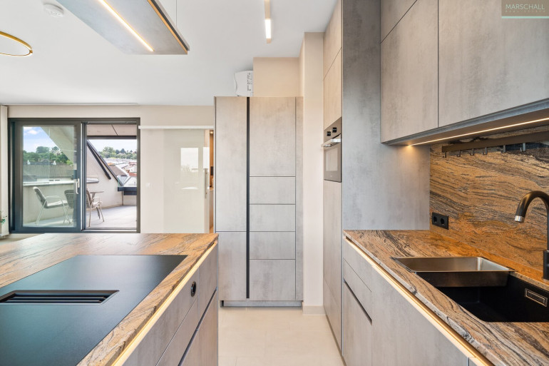 Steinboden, Solarenergie, Gas, Fußbodenheizung, Zentralheizung, Einbauküche, Wohnküche / offene Küche, Personenaufzug, Bad mit Fenster, Dusche, Kabel/Satelliten-TV, Tiefgarage