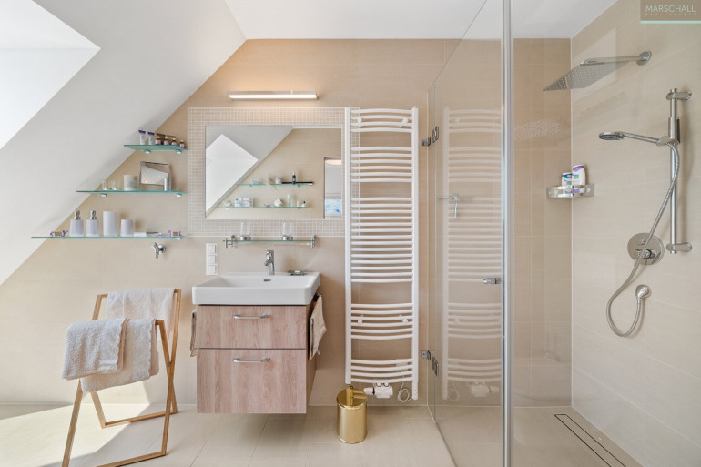 Hinweis: Im Rahmen unserer Offenlegungspflichten weisen wir darauf hin, dass unsere Fotos mittels KI-Technologien optisch verschönert und bearbeitet werden, sowie leere Räume mittels KI-Technologien virtuell möbliert und dekoriert werden. Betreffende Visualisierungen tragen als Bildunterschrift Bezeichnungen wie "KI-generierter Einrichtungsvorschlag"
