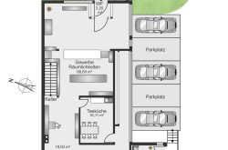 - Erdgeschoss: Nutzfläche von ca. 180 m² mit Teeküche, Waschraum, WC sowie