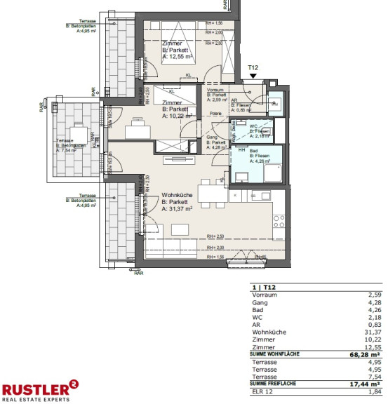 | Heizwärmebedarf: | B 29,70 kWh/m²a |