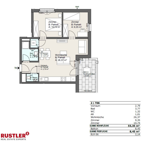 Wohnfläche: 55,35 m²