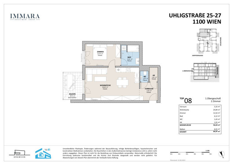 Dieses schöne Neubauprojekt befindet sich in der Uhligstraße, einer sehr ruhigen und begrünten Straße zwischen Oberlaaer Straße und der Ampferergasse. Der Kurpark Oberlaa ist in ca. 15 Minuten fußläufig zu erreichen.
