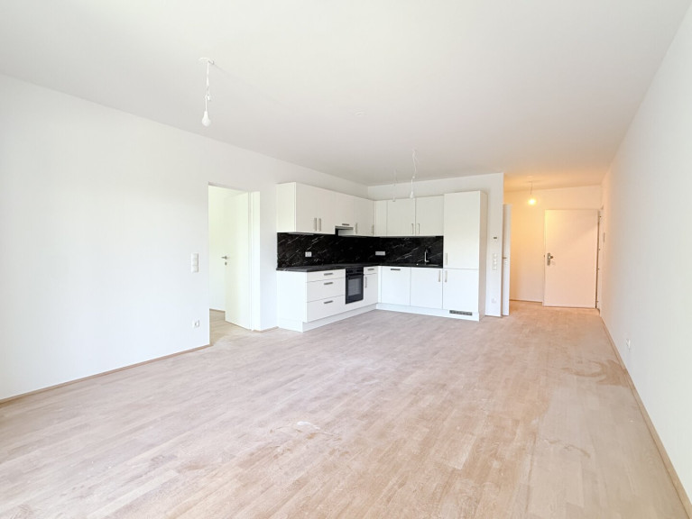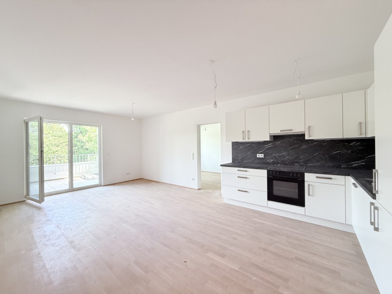 Zum Verkauf gelangt diese perfekt geschnittene Zweizimmerwohnung mit Balkon im 1.Liftstock eines sehr geschmackvollen Neubauhauses (Fertigstellung März 2026) in Grün-Ruhelage.