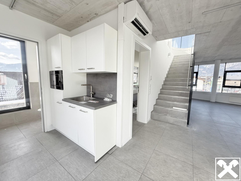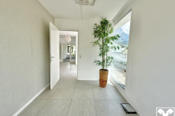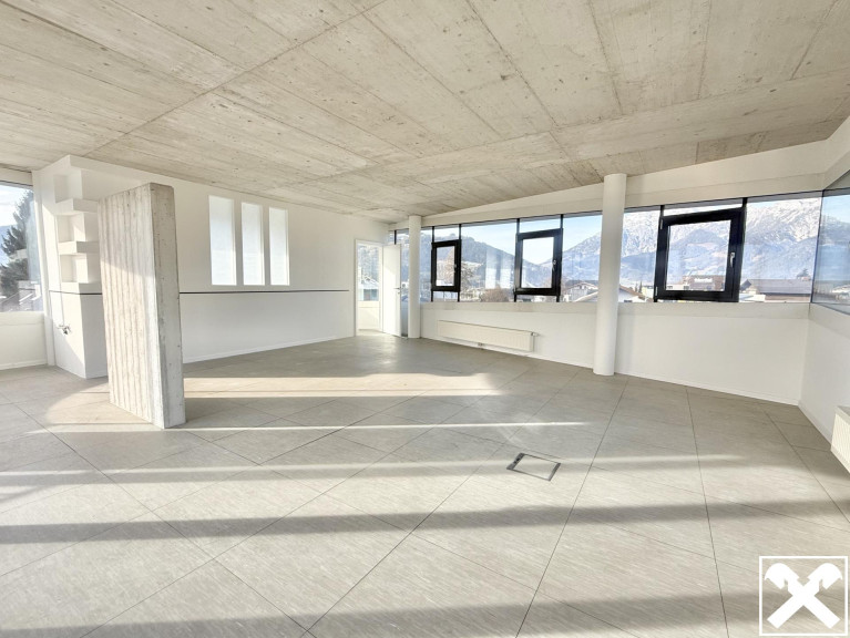 Vor dem Eingang finden Sie Stellplätze vor, diese können für € 50,00 zzgl. Mwst/Einheit angemietet werden. Im Erdgeschoss befindet sich eine namhafte Fahrschule mit eigenem Zugang. Über den Stiegenaufgang hinter dem Haus gelangen Sie von den Parkflächen direkt in das erste Obergeschoss. Hier erstreckt sich die lichtdurchflutete, moderne und klimatisierte Bürofläche auf knapp 142 qm. 2 getrennte Räume, eine Küche, eine Toilette sowie ein Serverraum könne Ihren Vorstellungen spezifisch angepasst werden, ein Balkon mit Bergblick rundet das Angebot ab.
