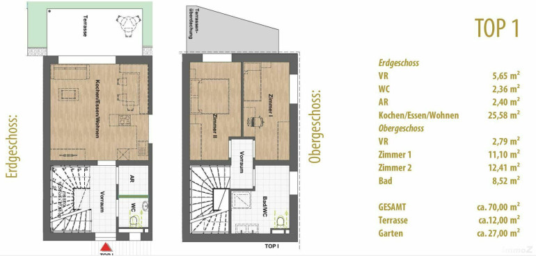 - ca. 12 m² große Terrasse und ein ca. 27m² großer Garten